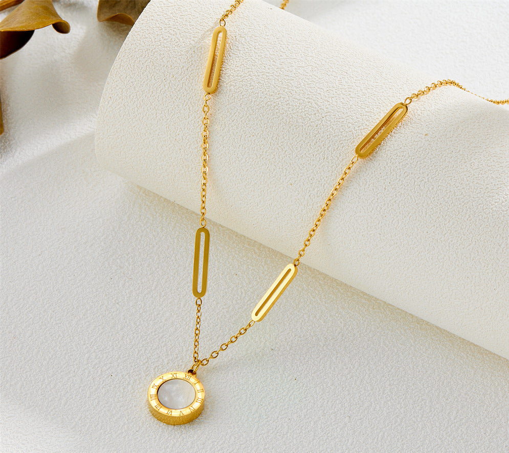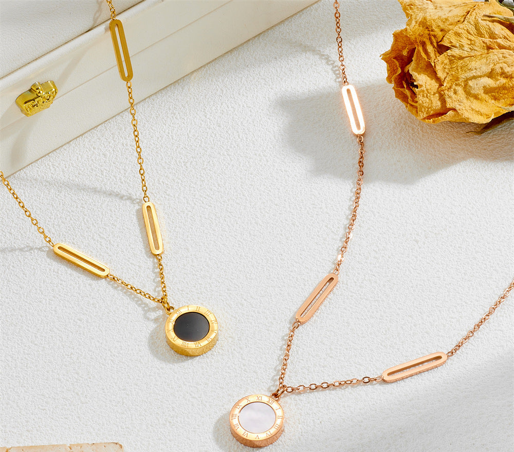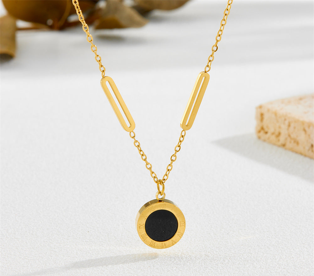 Roman numeral pendant titanium steel necklace 2025081101